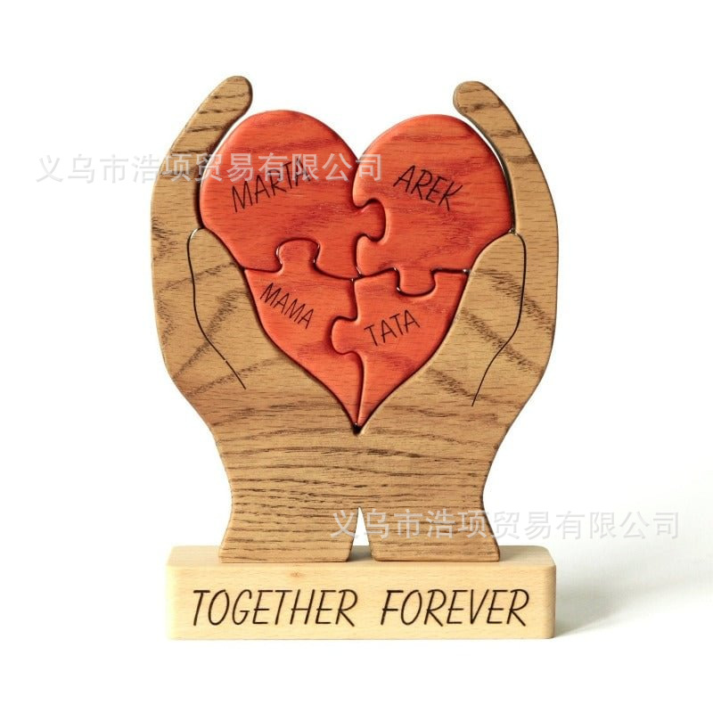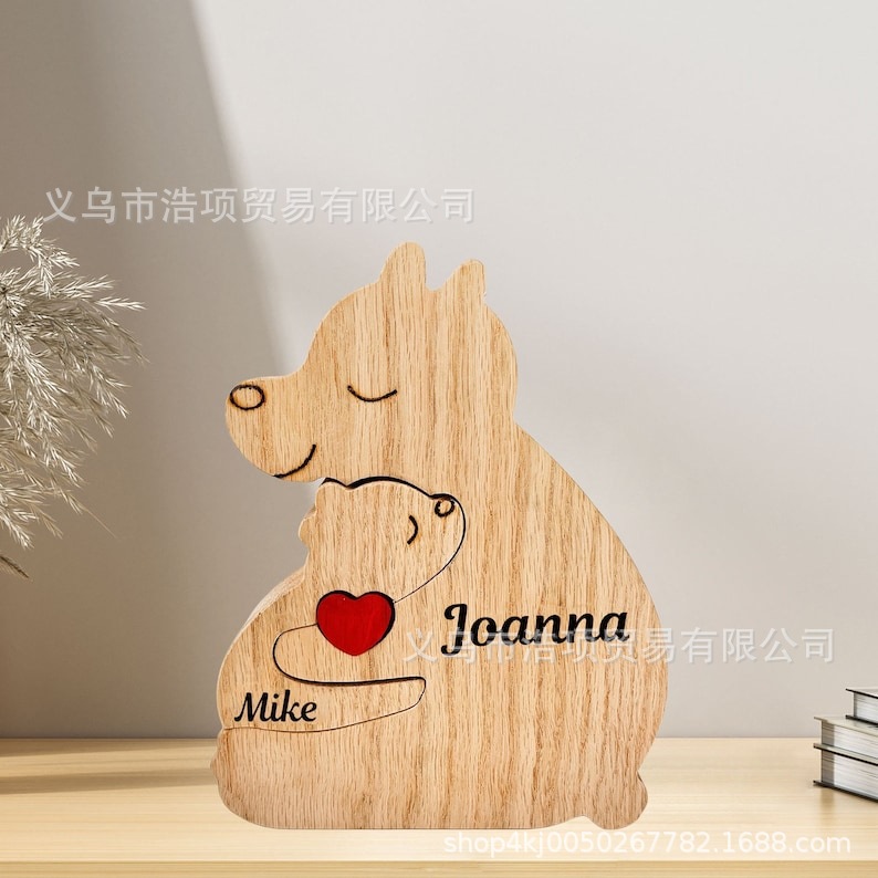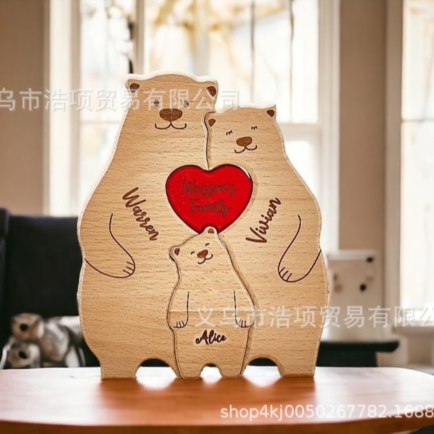 クロスボーダー木製ひとり親パズルdiyパーソナライズされたカスタム木製熊家庭パズル、家庭記念
