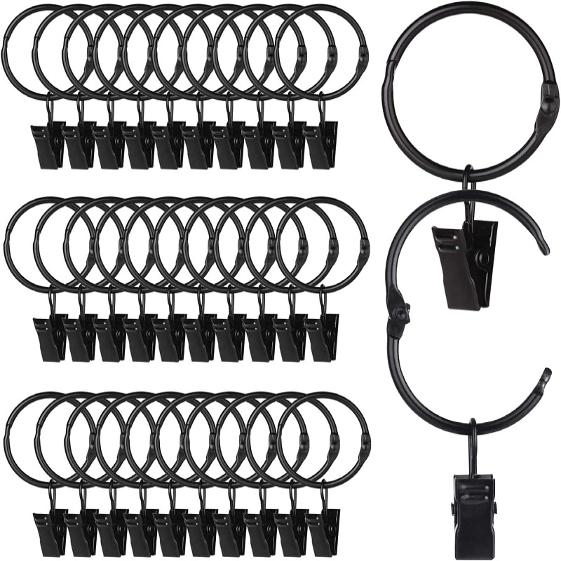 アマゾン簡易内32黒カーテンクリップ黒開口カーテンフック銀白色カーテンリング