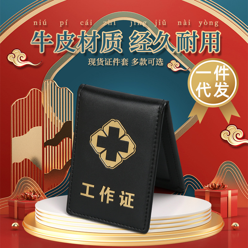 源メーカー真皮作業証カードカバー牛革工証保護カバー公務皮カバーはロゴを印刷できます。