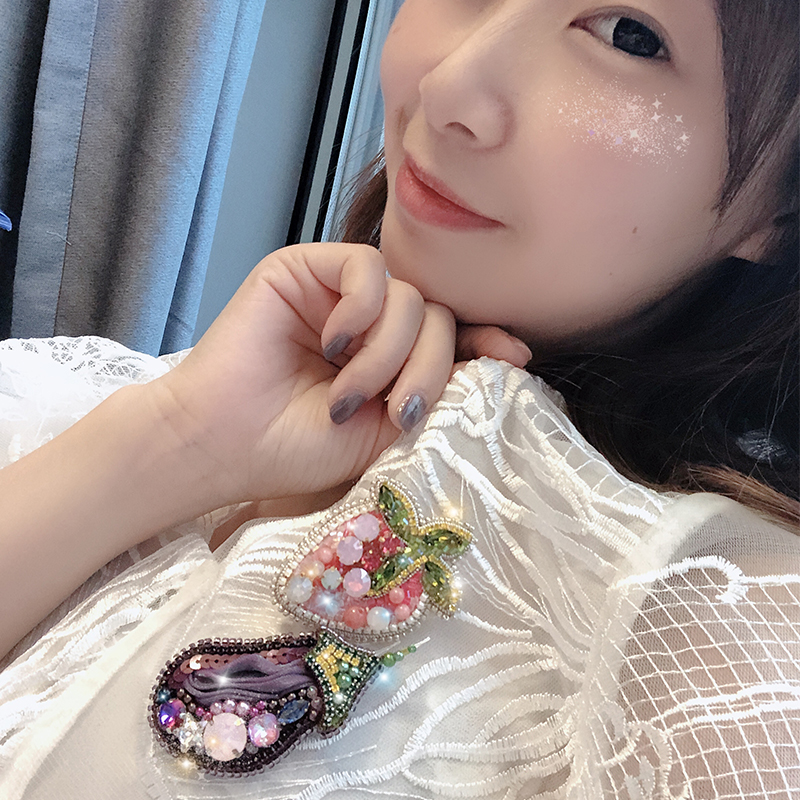 1057-4 フレンチビーズ刺繍イチゴナスブローチかわいいコサージュジュエリーシルクスカーフバックル手作り diy 材料パッケージ