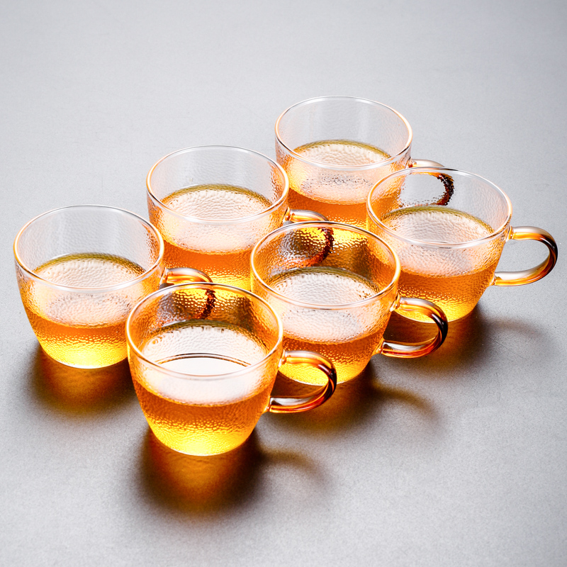 ガラスの小さいティーカップは家庭用のお茶を飲むコップを持っています。