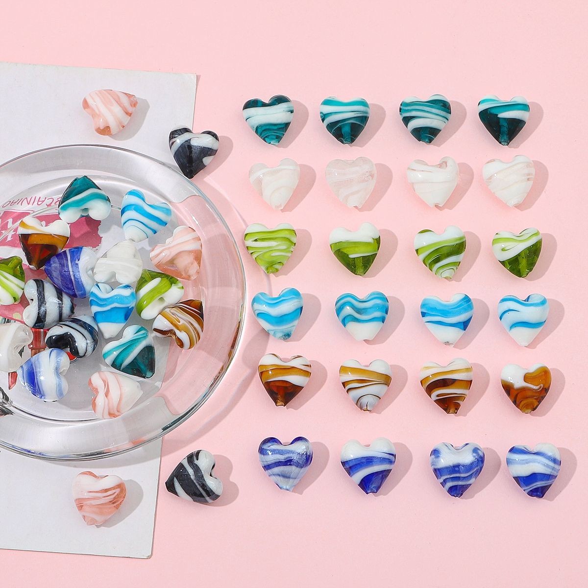 カラフルな手描き瑠璃愛の縞模様のストレートビーズ手作りDIYブレスレットネックレス手串アクセサリーE18