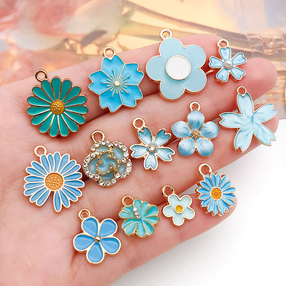 30個の湖の青い滴の油の花の5弁の8弁の花のdiy合金の滴の油のアクセサリの部品の越境するキーホルダーe 18