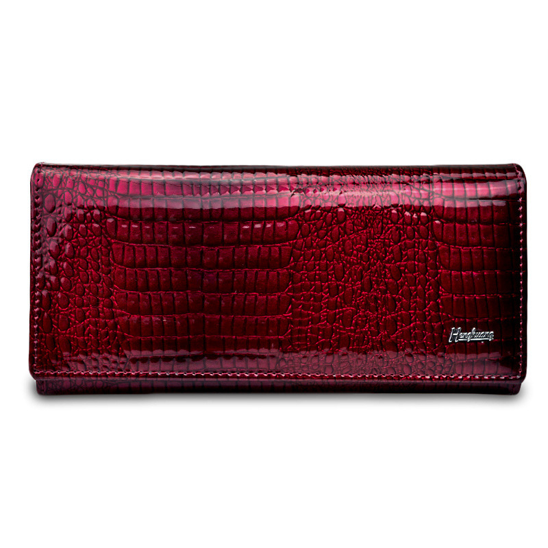 外国貿易の長い本革の女性の財布の長いタイプの漆の皮のワニの紋様の財布のロシアのOZON速売はJOOMを通します。