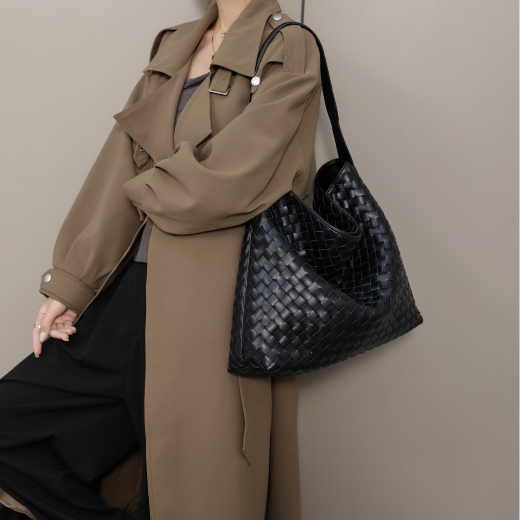 オール牛革手织りバッグ大きいサイズトート脇下バッグシンプル通勤オシャレ本革バッグ高级感レディースバッグ