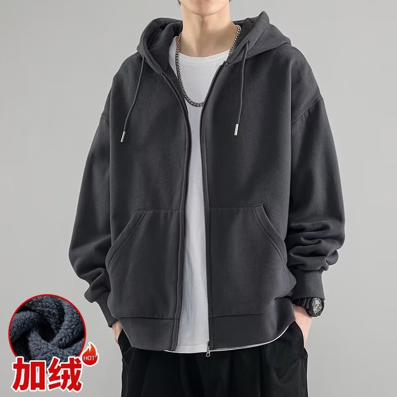 ベルベットの男性は秋冬に2024年に新しい青少年学生の冬に帽子のカーディガンの上着を厚くした男の子