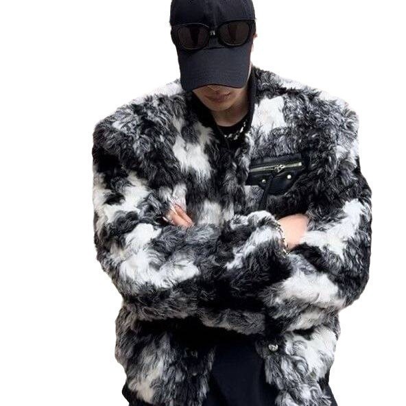 子羊の毛の綿服の男の秋冬の青少年の潮流は襟を立ててミンクの毛の綿服をまねます。