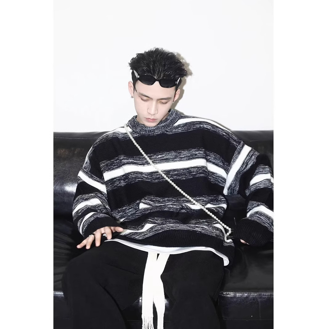 アメリカのレトロな高街のストライプの丸首のセーターの男性のゆったりとした秋冬のファッションブランドのアメリカの怠惰なニットの上着のファッション