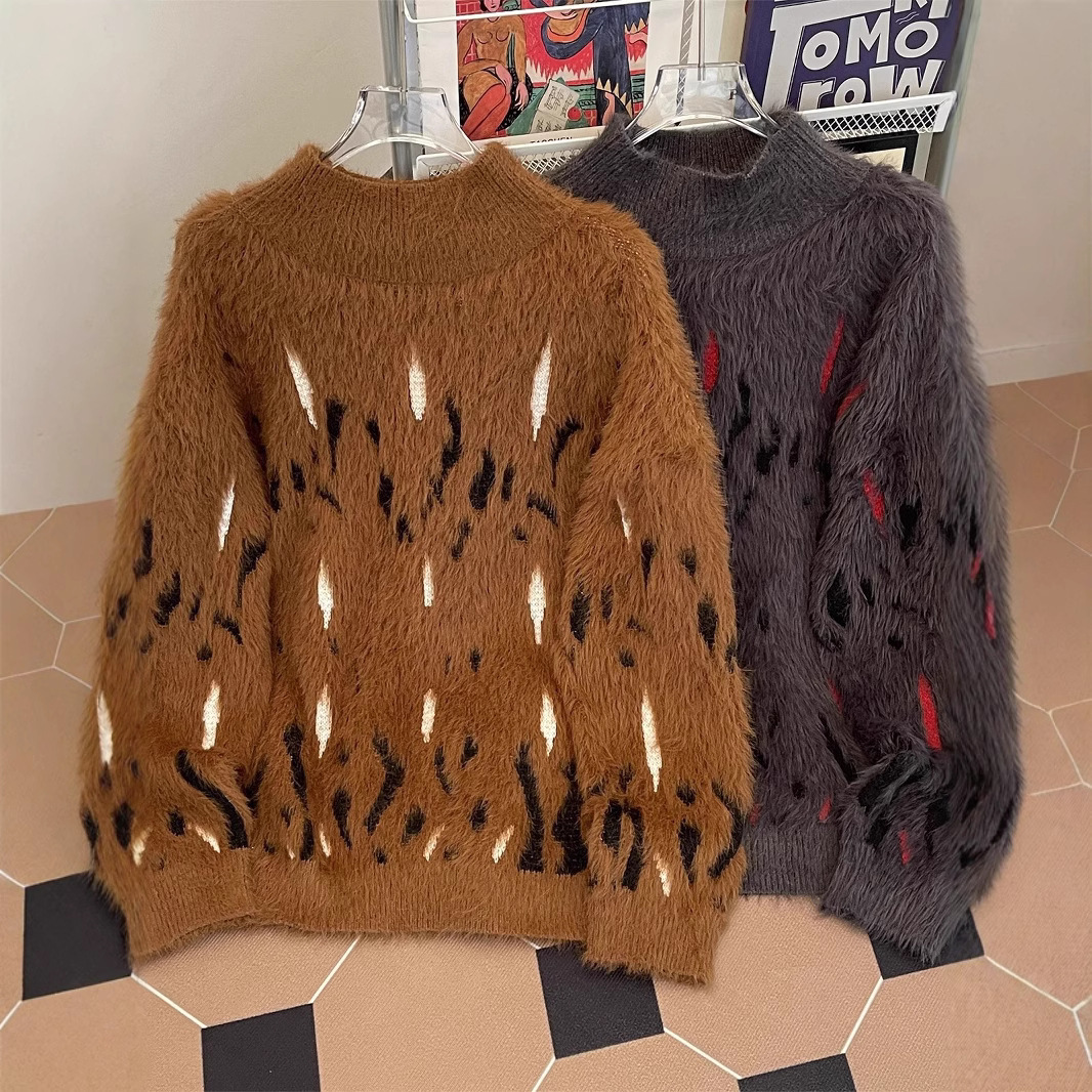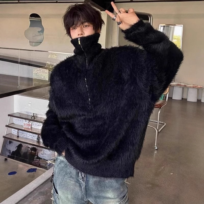 秋の冬はミンクの毛の高襟のぬいぐるみのセーターの男性のゆったりしていて怠惰な風の新年の雰囲気感のメリヤスの上着のセーターです。