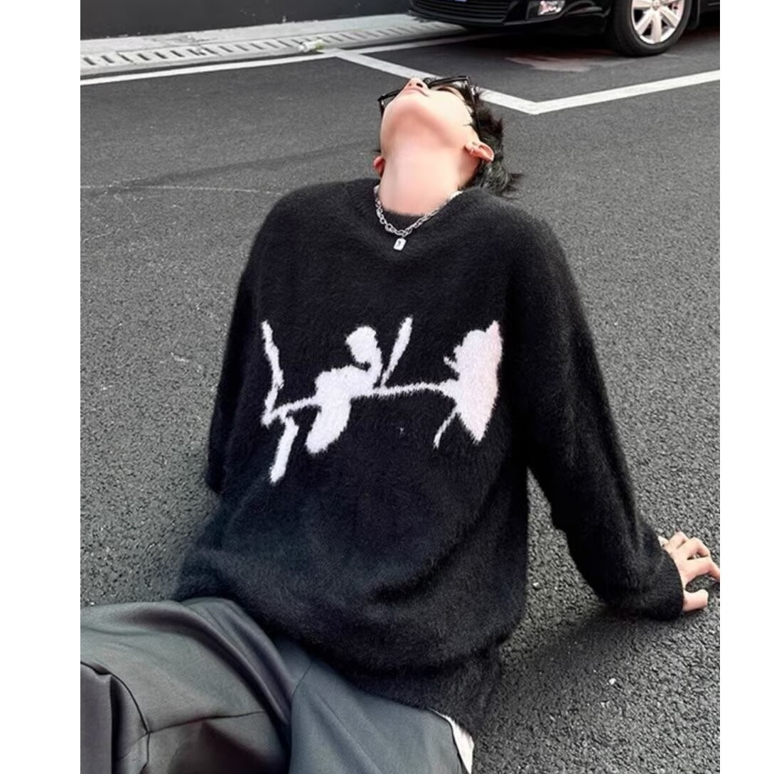 2024年セーターメンズ韓国版ゆったりトレンド個性insニット糸衣プラスゆったりタイプ冬カジュアル