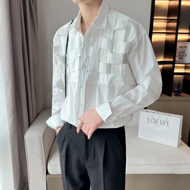 春と秋のデザイン感のある男性の長袖シャツの新しいファッションのごろつきのハンサムでゆったりした高級感のあるシャツのコート