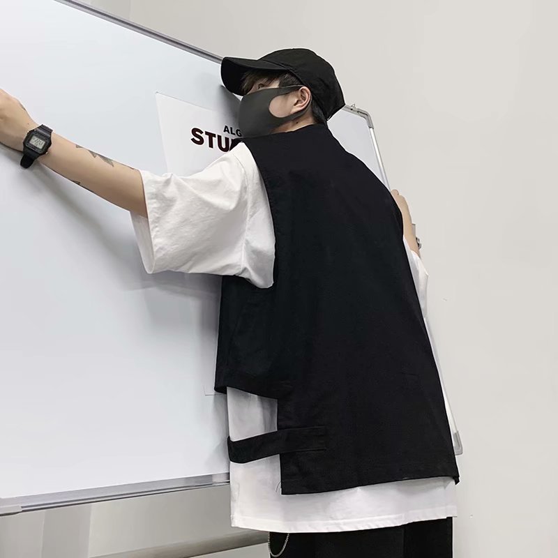 2024年の新型ファッションブランドの夏服の男性のゆったりした髪のスタイリストのファッション服は不規則なつなぎ合わせのヒップホップベストを着ます。