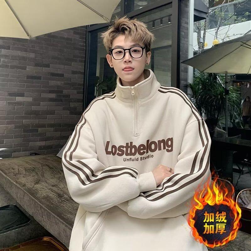 半高襟ファスナー長袖セーター男性高級怠惰感プルオーバー