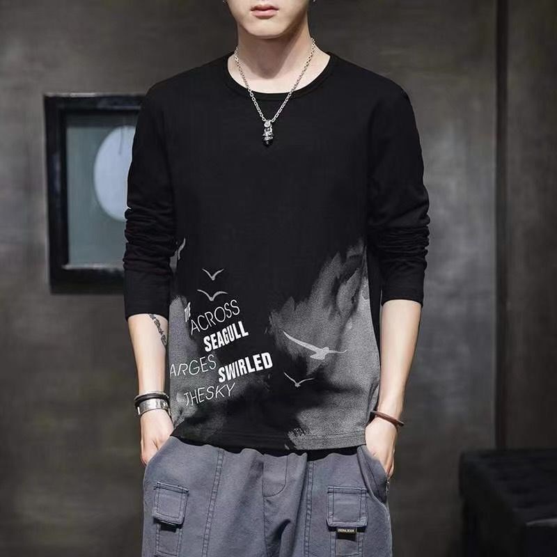 2024秋の新型男性長袖tシャツは韓国版のファッション学生がゆったりした秋に服を着ます。