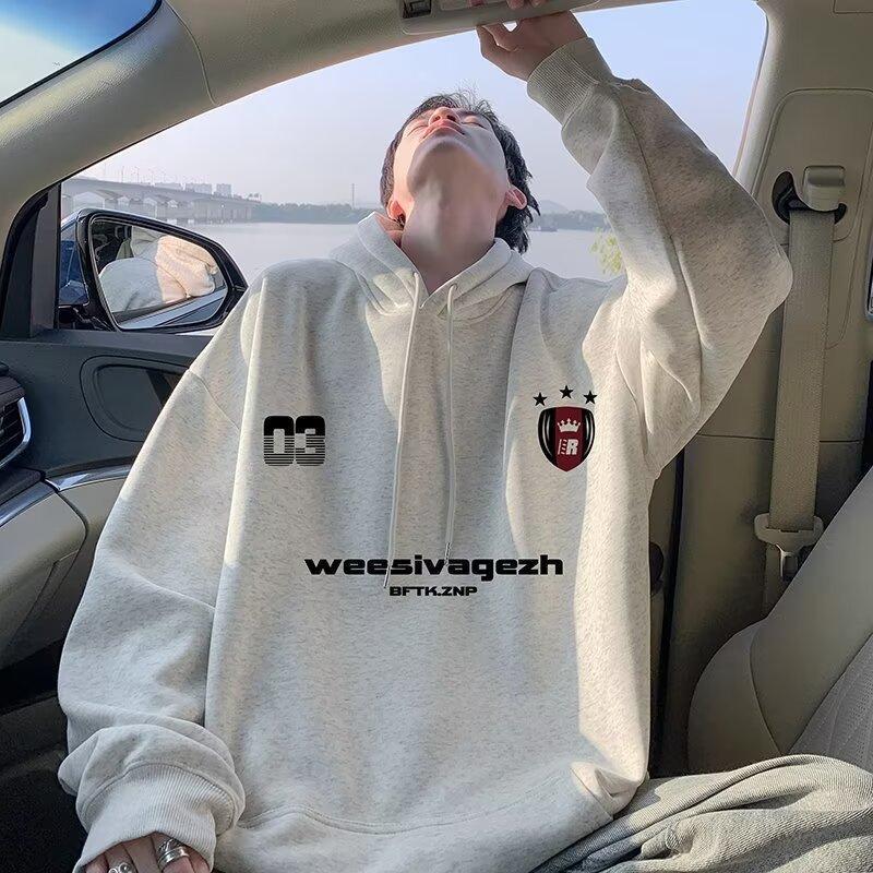 ファッションブランドの春と秋の帽子付きのパーカー男性2024新型のファッションに合わせて、アメリカのレトロでゆったりしたコートを作ります。