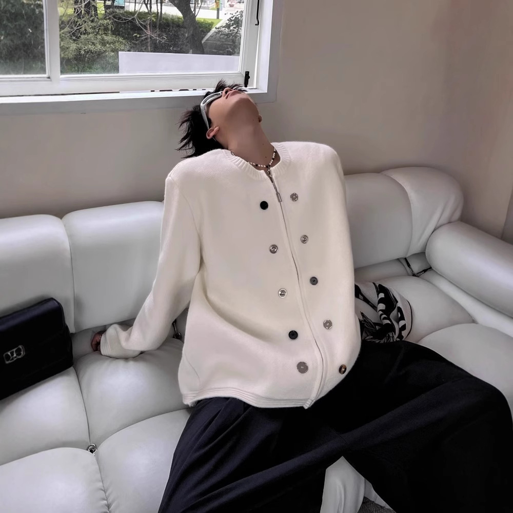 2024春秋重ポンドの小香風が厚いニットカーディガンのゆったりした高級感があります。