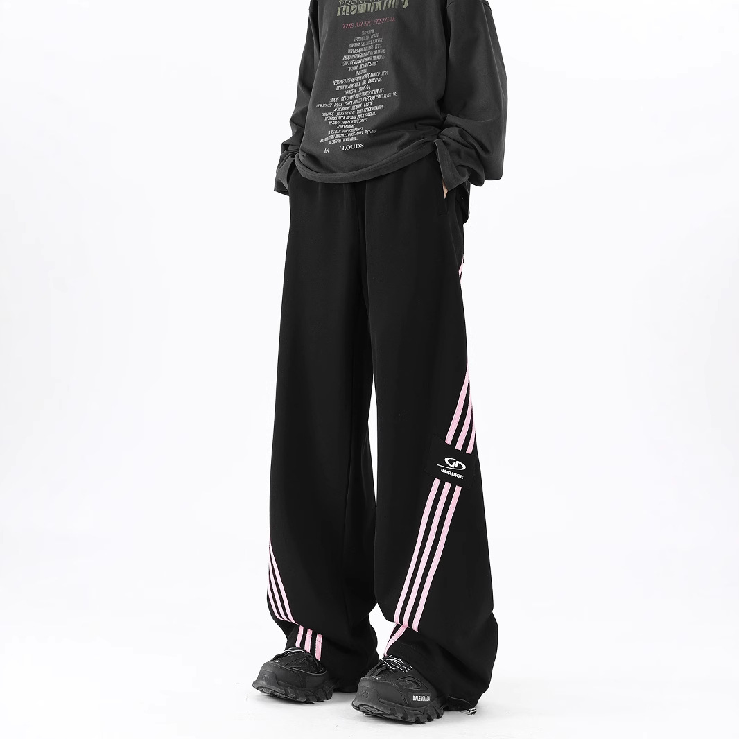 2024アメリカのストライプの工装のズボンの男性の秋の高い街の百合のカジュアルな街のダンスのズボンのファッションのブランドのまっすぐな筒の広い足の運動のズボン