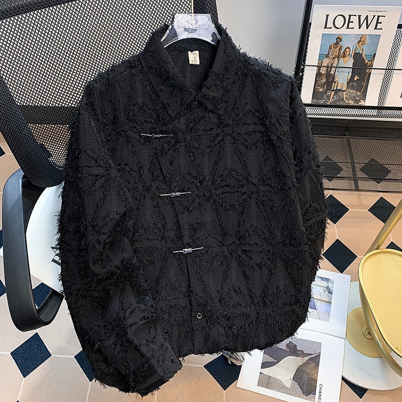 国のファッションブランドのカジュアルな長袖のシャツの男性の高級感の中国風の金属はシャツを掛けます。