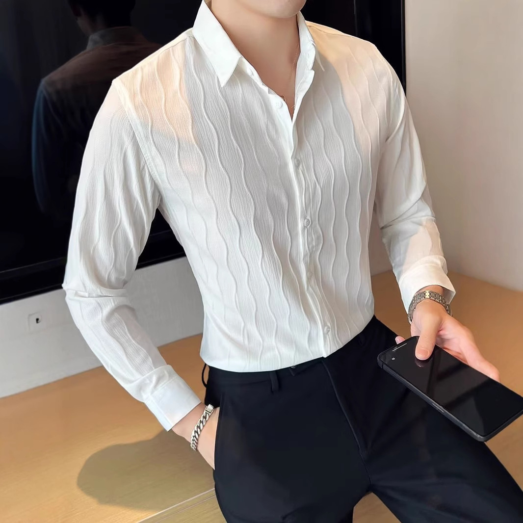 高級感のあるシャツの長袖の男性は韓国版のごろつきのかっこいいスーツの中に寸のシャツのデザイン感のファッションブランドのinsのシャツを身につけます。