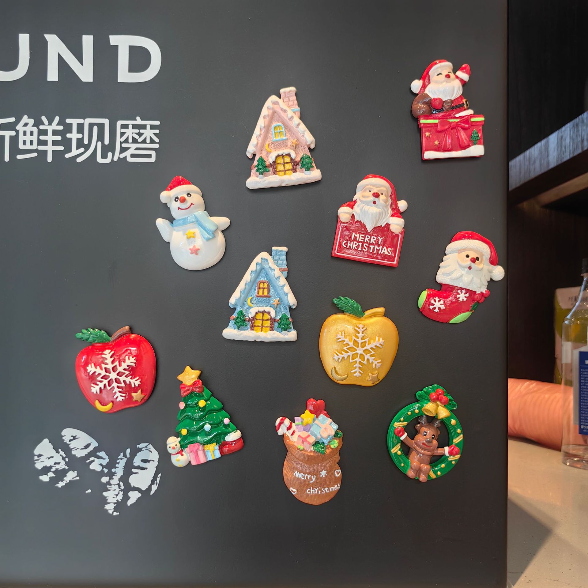 1688国境を越えた新しいクリスマスツリー冷蔵庫は磁気シールを貼って創造的な雪の家の磁気シールを飾ってかわいい平安果プレゼントを貼った