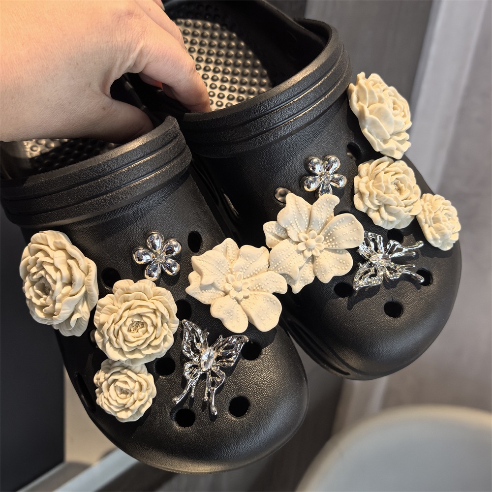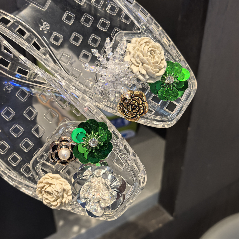 Xiaohongshuと同じスタイルのクリスタルシューズ、高級スパンコール牡丹ゼリーシューズバックル装飾、取り外し可能な下駄の花