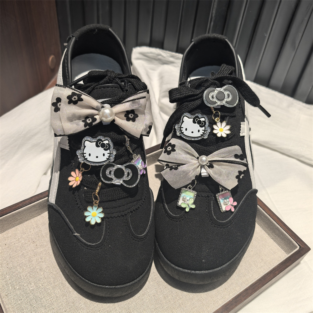 韓国風バレエスタイルラブシルバーパールリボン靴バックルチェリーストロベリーグレープビーズスニーカー靴花