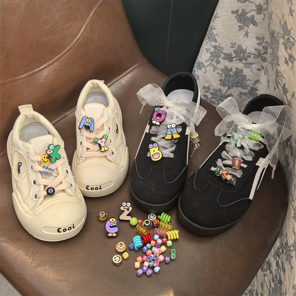 子供っぽくてかわいいアルファベットサッカービリヤードシューズバックル靴花スマイリーフェイスドーパミンキャンディーカラー子供靴ひも装飾アクセサリー