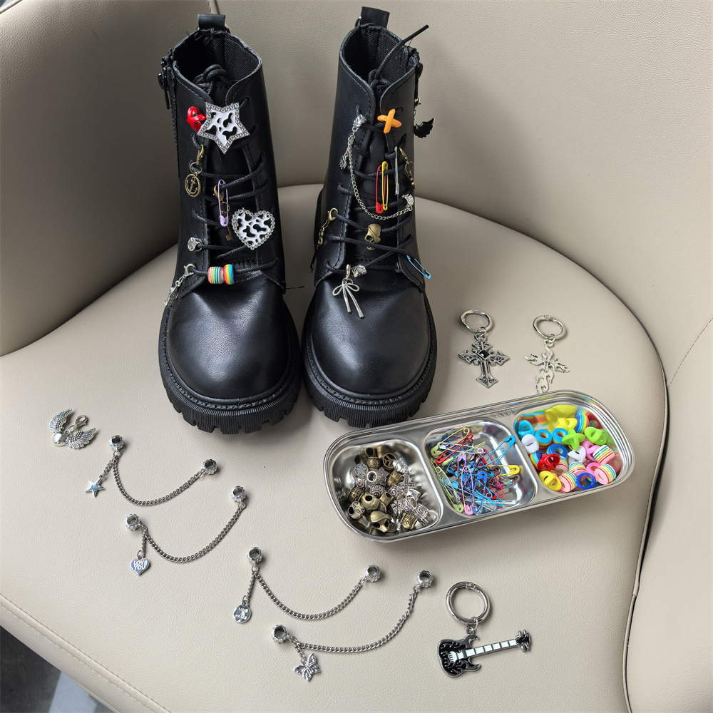 新しいギターマーティンブーツ、ハイエンドメタルパンクシューズアクセサリー、オートバイシューズ、ヒール装飾靴バックルチェーン