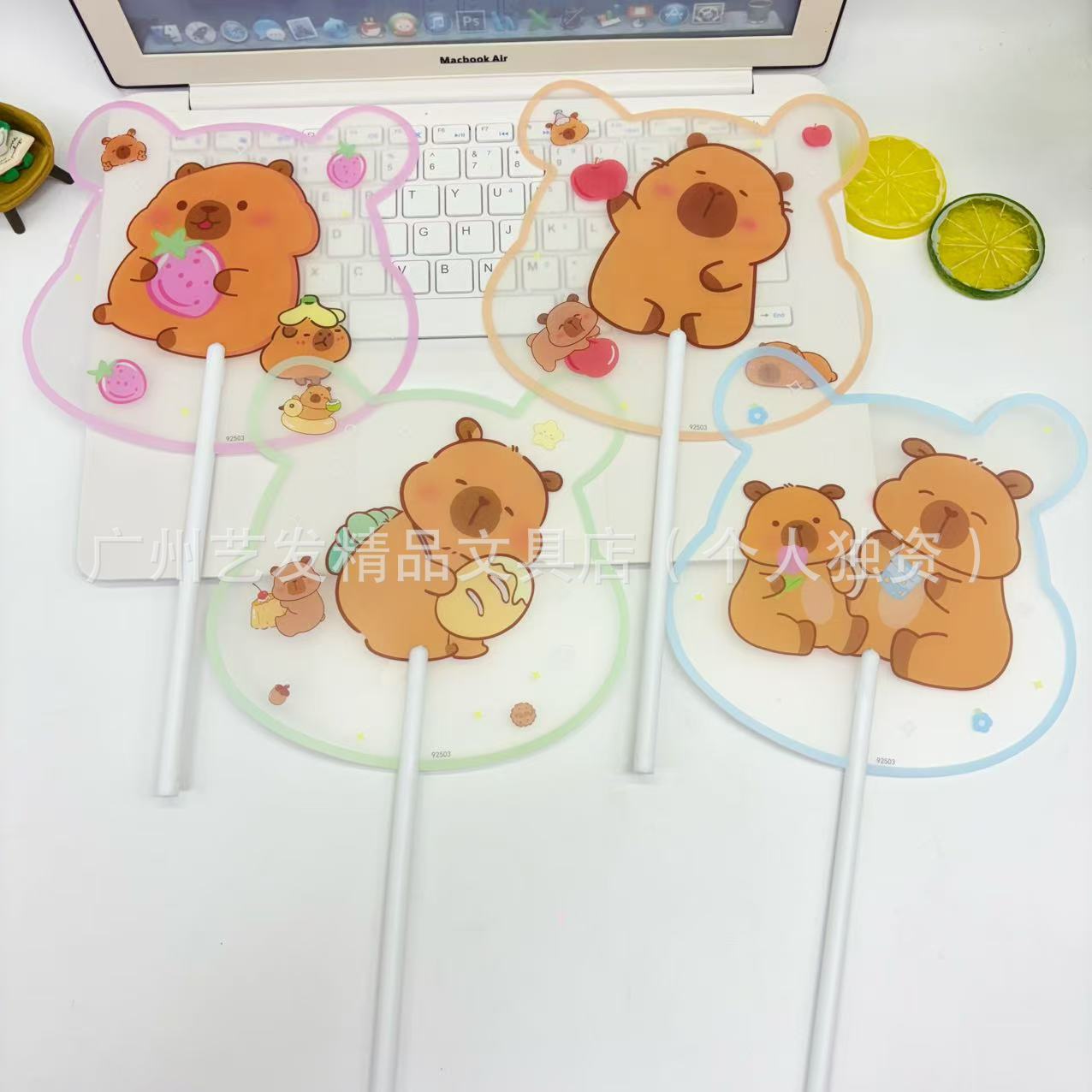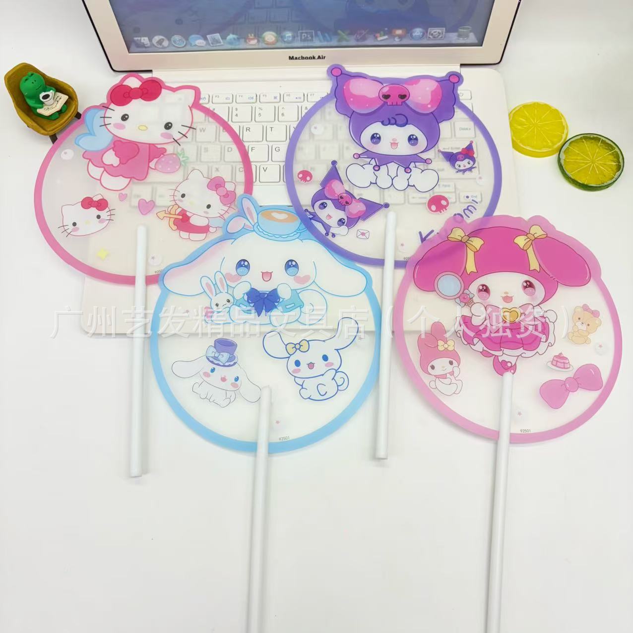 クロスボーダー漫画ファンかわいい PP ファン透明つや消しポータブルプラスチックファン手回し夏の香りのファン卸売