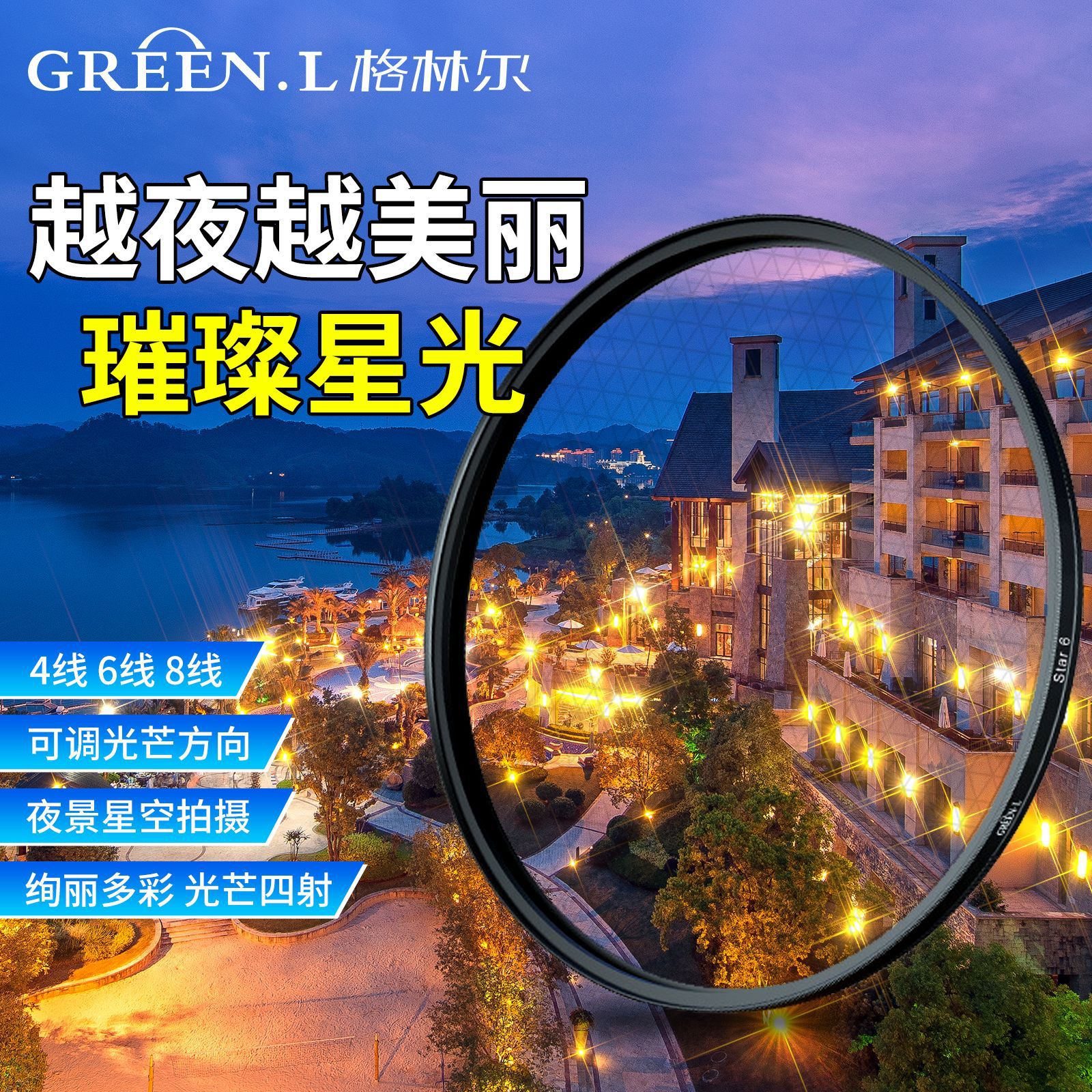 グリーンルラ糸星明かり星芒鏡4線/全線夜景カメラフィルター一眼レフマイクロ単レンズフィルター