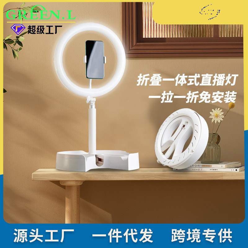 携帯電話折り畳みスタンドing lightリング補光ライトデスクトップ着地携帯型生中継ビデオ撮影