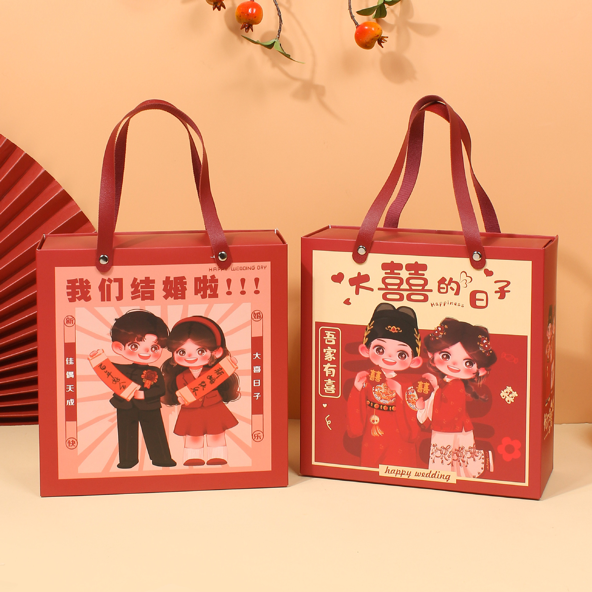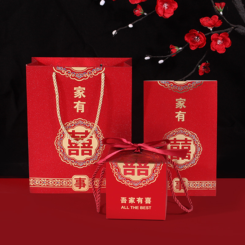 民族風結婚式招待状喜糖箱手提げ袋三点セット結婚祝い用品セットタバコキャンディー結婚お返しセット