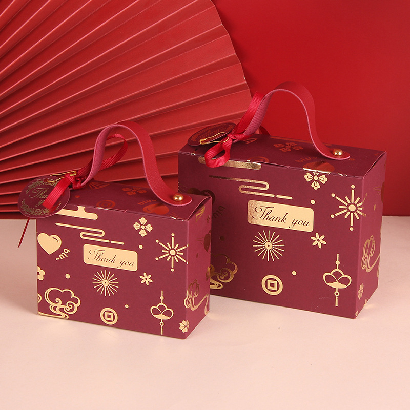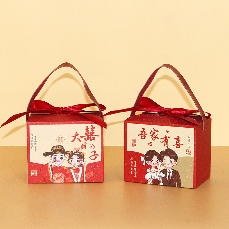 喜糖箱ins風新型中国式手提げキャンディー箱結婚式喜糖袋大サイズレトロお土産リボン箱