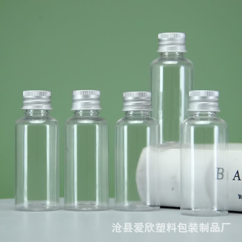 メーカー卸売り30ml petアルミ蓋ペットボトル18口径透明小瓶乳液分注瓶