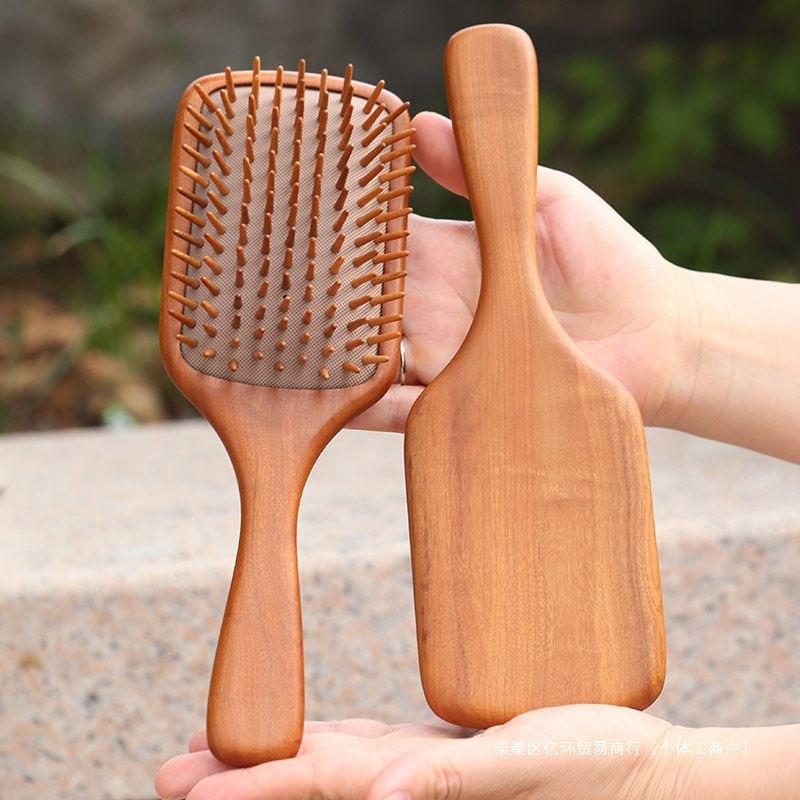 無垢材ポータブルエアクッションコーム女性のメイクアップコームストレートヘアヘアケア帯電防止カーリングヘアマッサージ大型エアバッグコーム