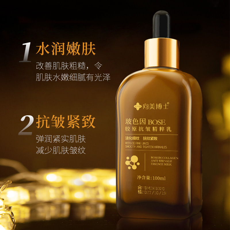Dr. Xiangmei Bose の抗シワピュアミルクは、顔のしわを特別にケアし、引き締め、ベタつかないエッセンスを提供します。