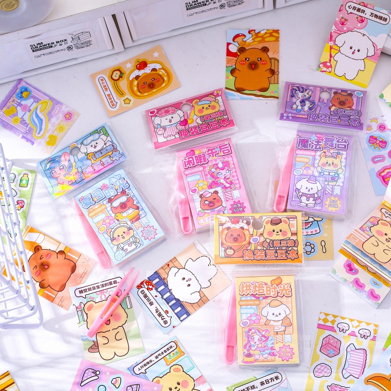 動物着せ替えビーニーブック第3弾 漫画ミニゲームシーン50枚 DIYステッカー 子供用ハンドブック素材