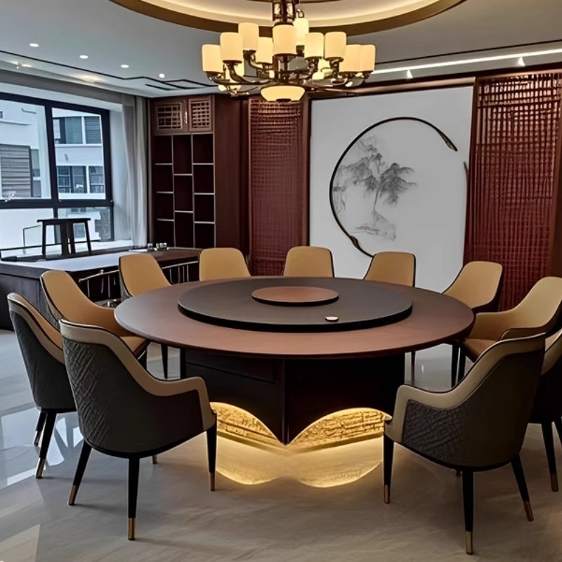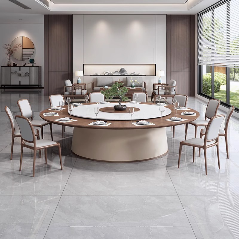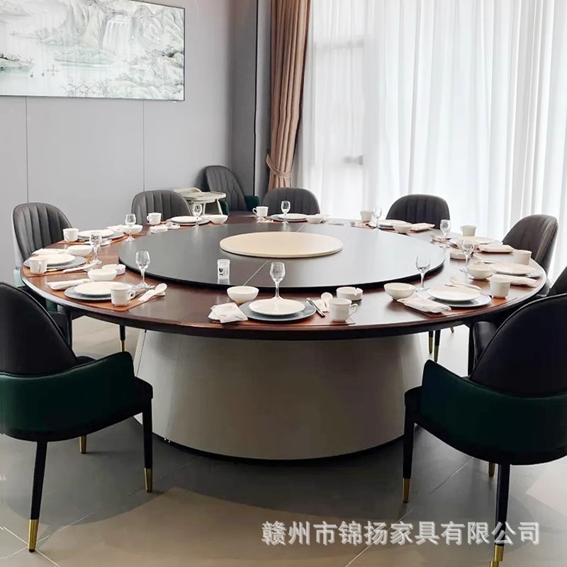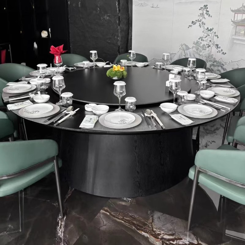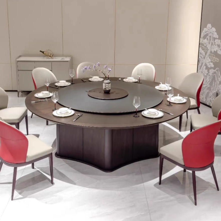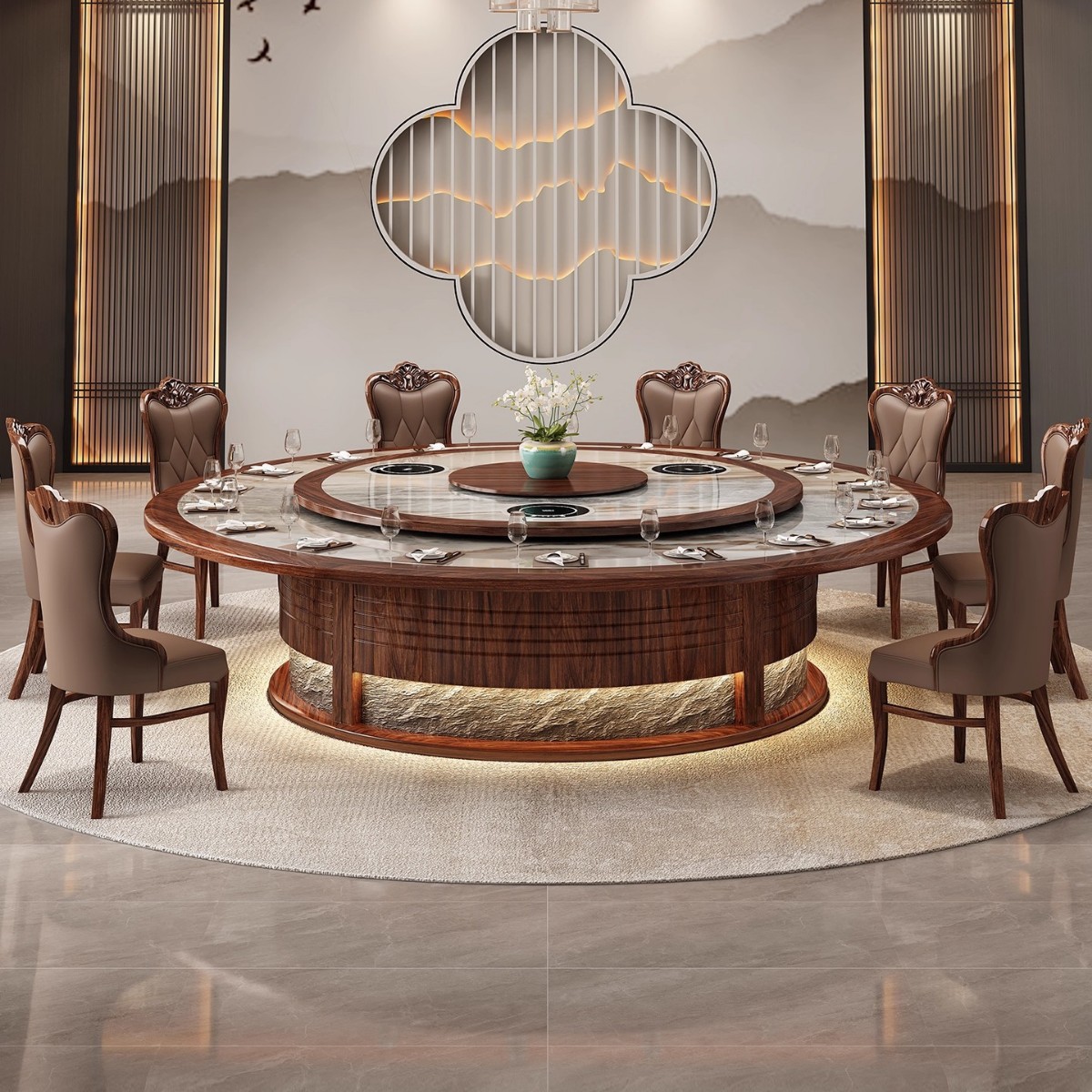 電気ダイニングテーブル大型ラウンドテーブルスレートターンテーブル新中国風ホテルレストランクラブ商業無垢材ハイエンド15人20人