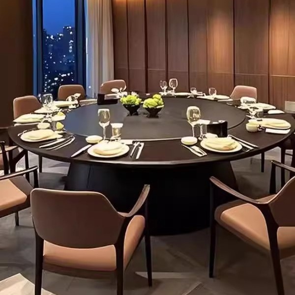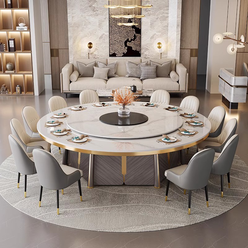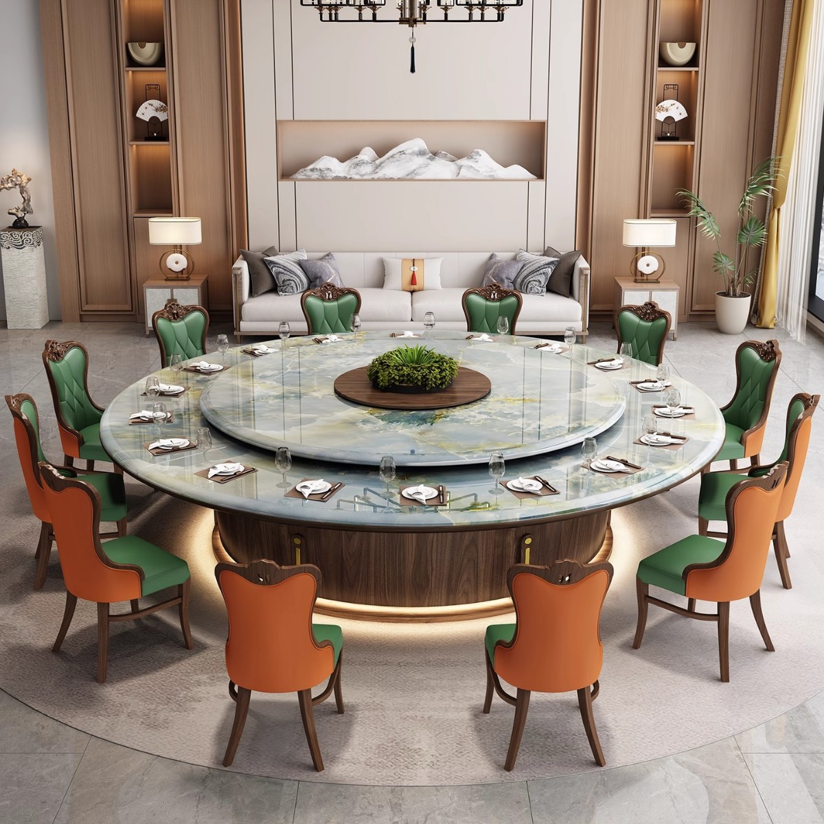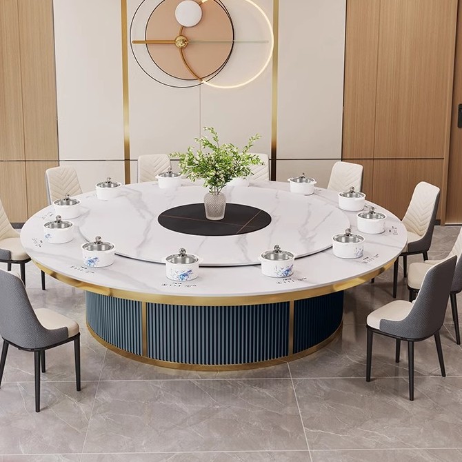 ホテルの高級大型ラウンドテーブル自動スレートターンテーブルホテルレストランボックスクラブ15人用20人用電磁調理器ダイニングテーブル