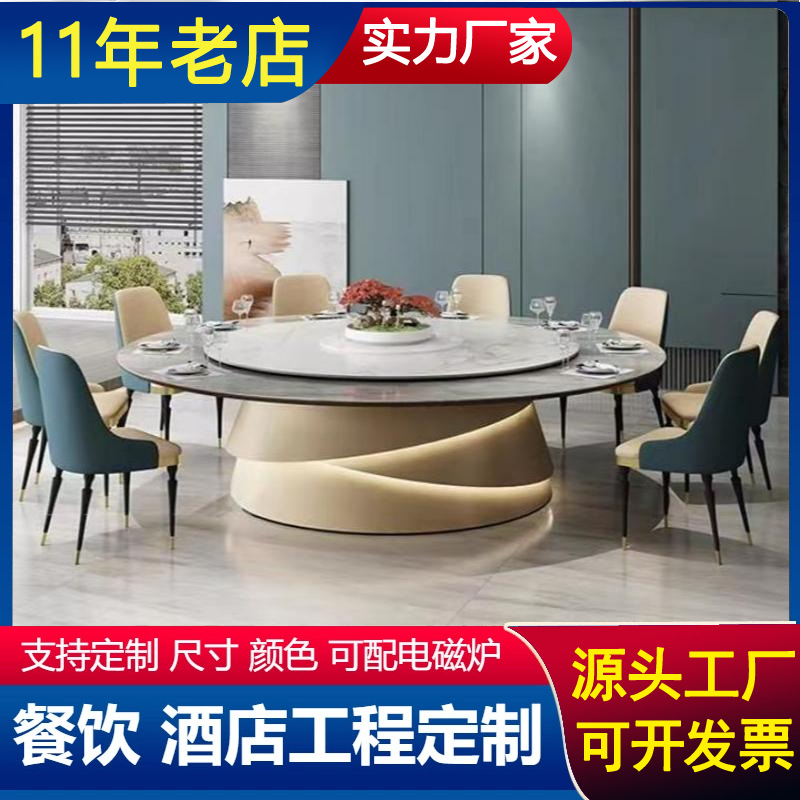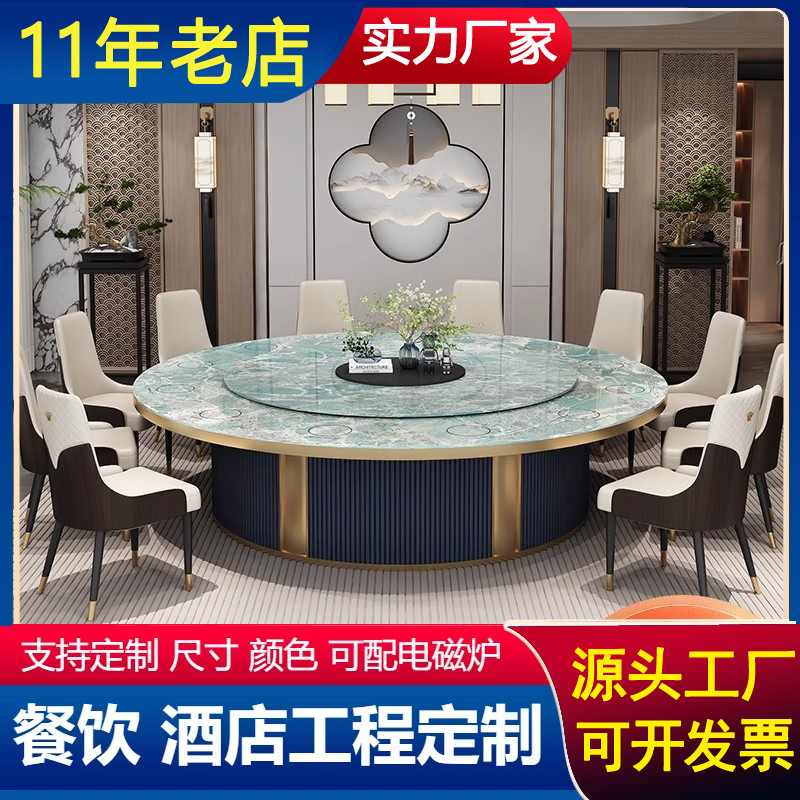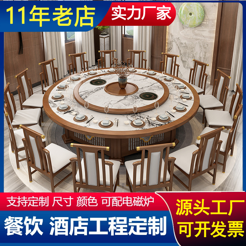 新中国式ホテルテーブル品質岩板電動大円卓会ホテル食卓実木円形テーブル20人