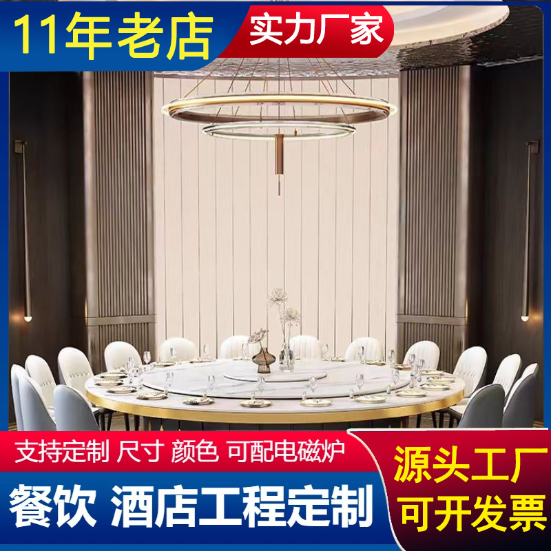新中国式ホテルテーブル大円卓10人15人20人クラブハウストランク実木電動回転盤火鍋テーブル