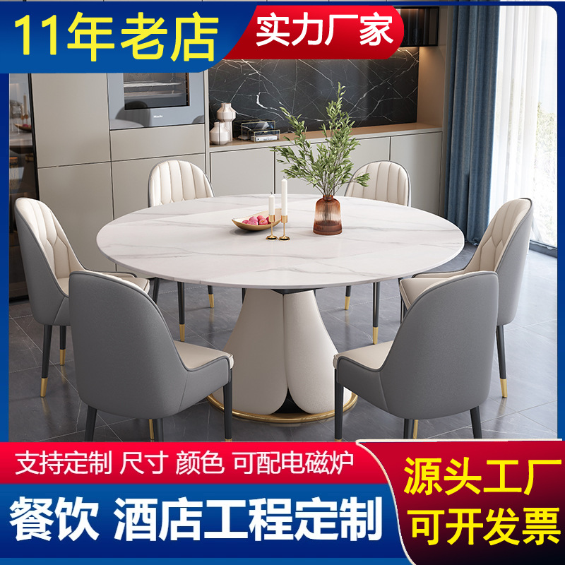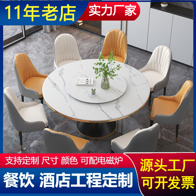 軽豪華岩板食卓と椅子の組み合わせ家庭用大円卓現代シンプル円形ダイヤル付き16人20人火鍋テーブル