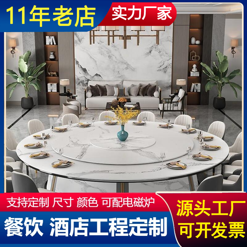 岩板電動食卓会ホテル大円卓大戸型別荘トランクレストラン円形食卓20人30人