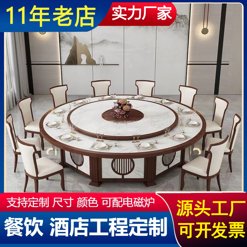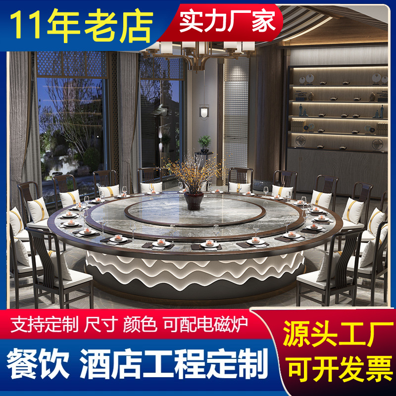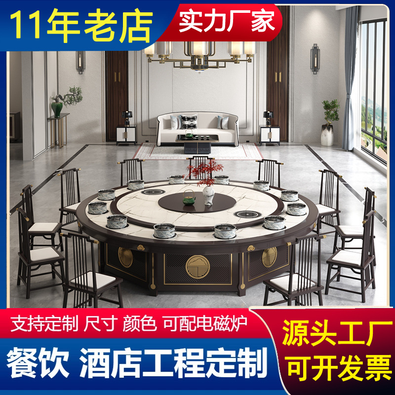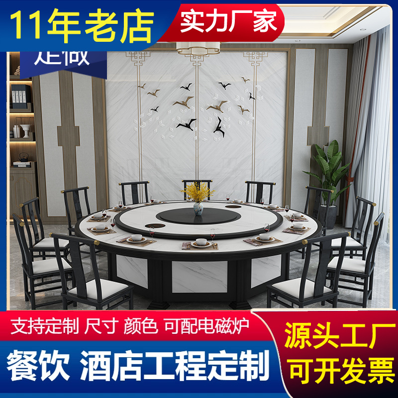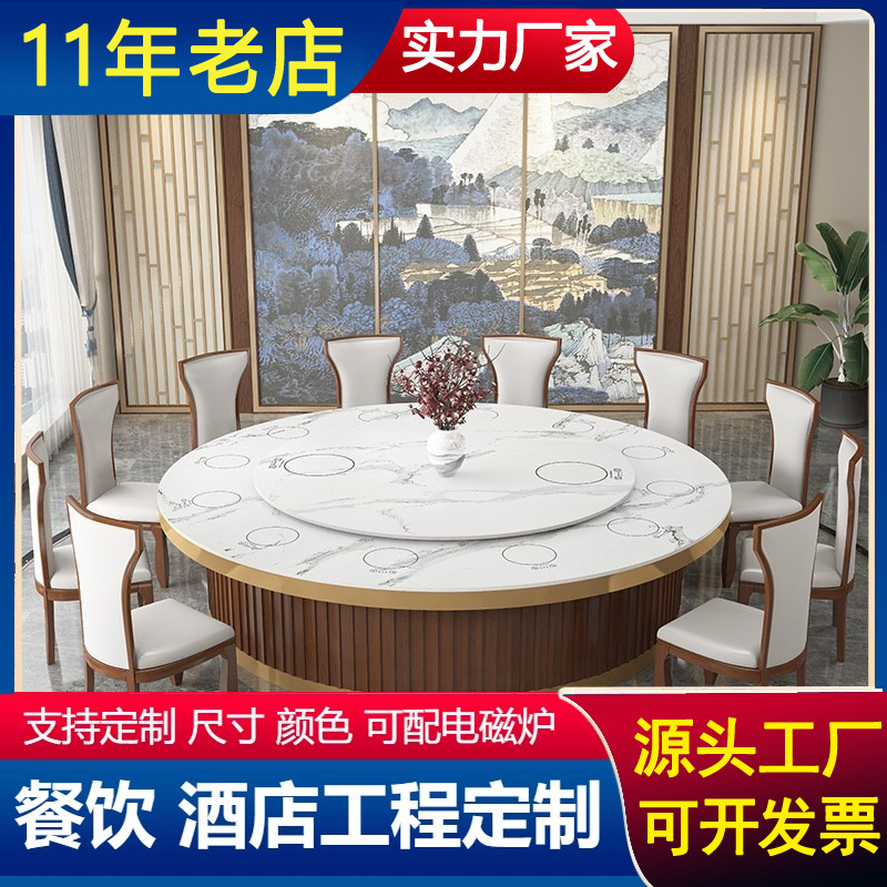 電気テーブルホテル大円卓新中国式岩板ステルス電磁ストーブ火鍋テーブル自動回転会別荘