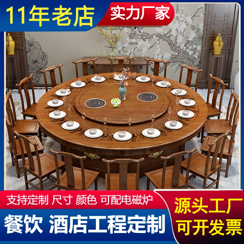 新中国式ホテル電動テーブルと椅子の実木円卓レストランの商用大円卓電磁ストーブの火鍋テーブルのカスタマイズ
