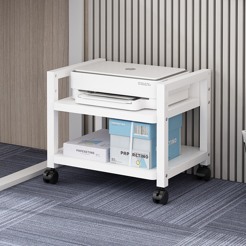 オフィス二層床置きプリンター収納ラック、机の下に車輪付き、取り外し可能、高さ調節可能な棚