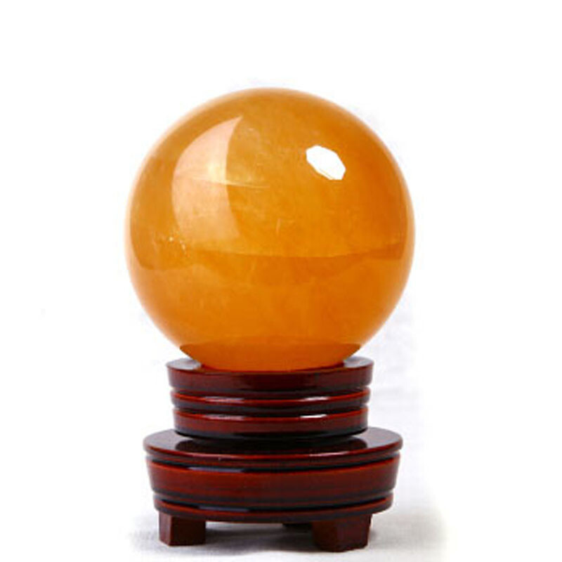 天然の黄色の方解石のボールの置物の黄色の水晶の玉の置物の原石は水晶の玉の置物を磨きます。