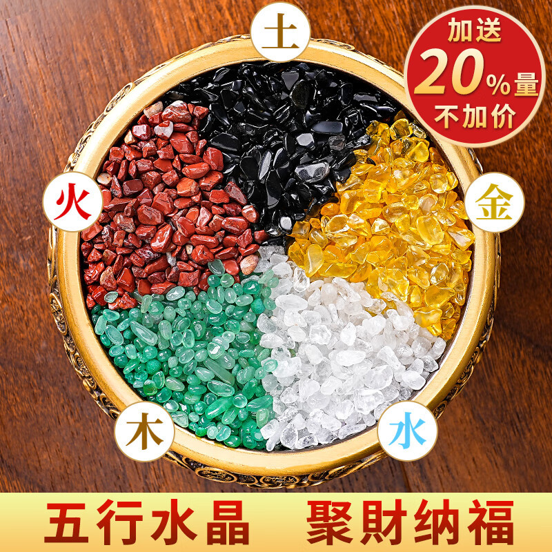 水晶砕石五色原石金木水火土五行石水晶粒砕水晶粒宝箱付き