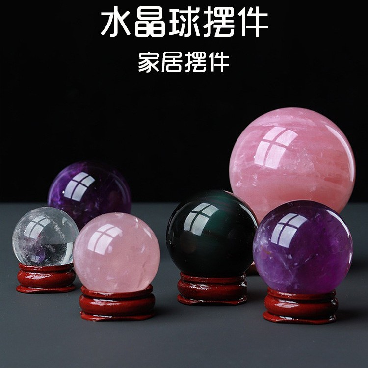 水晶球天然家水晶球紫晶球黒曜石粉晶球家庭玄関テーブル装飾品