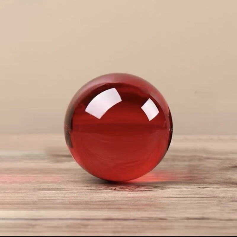 鴻運が真っ赤な水晶玉鎮宅に飾られています。